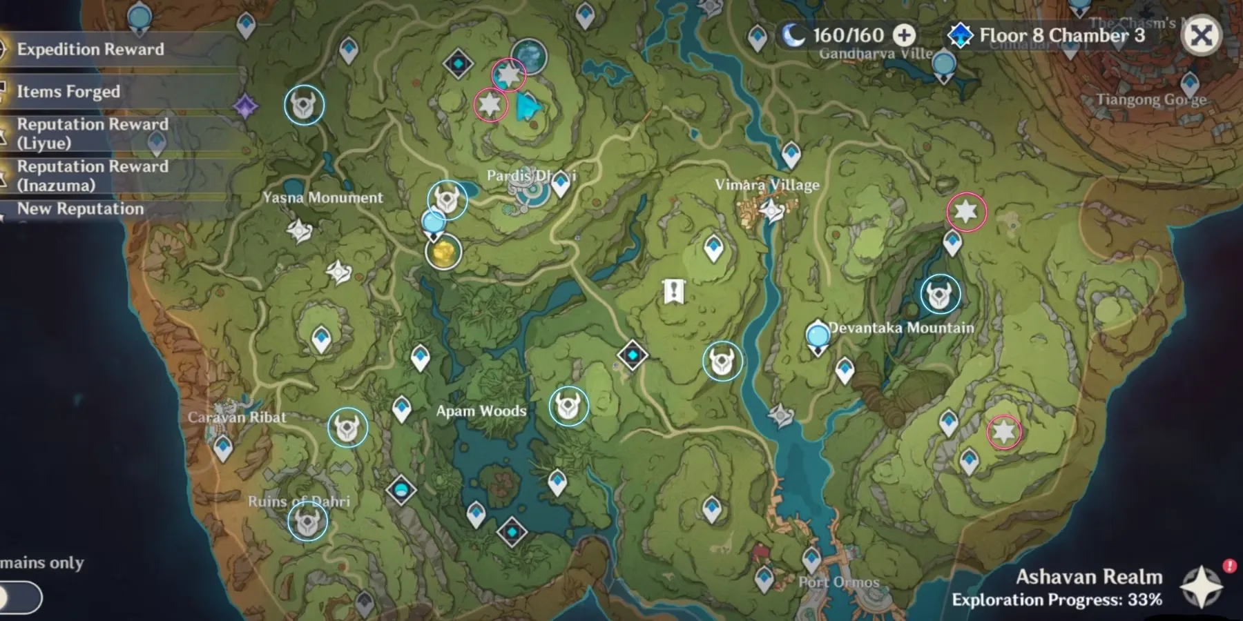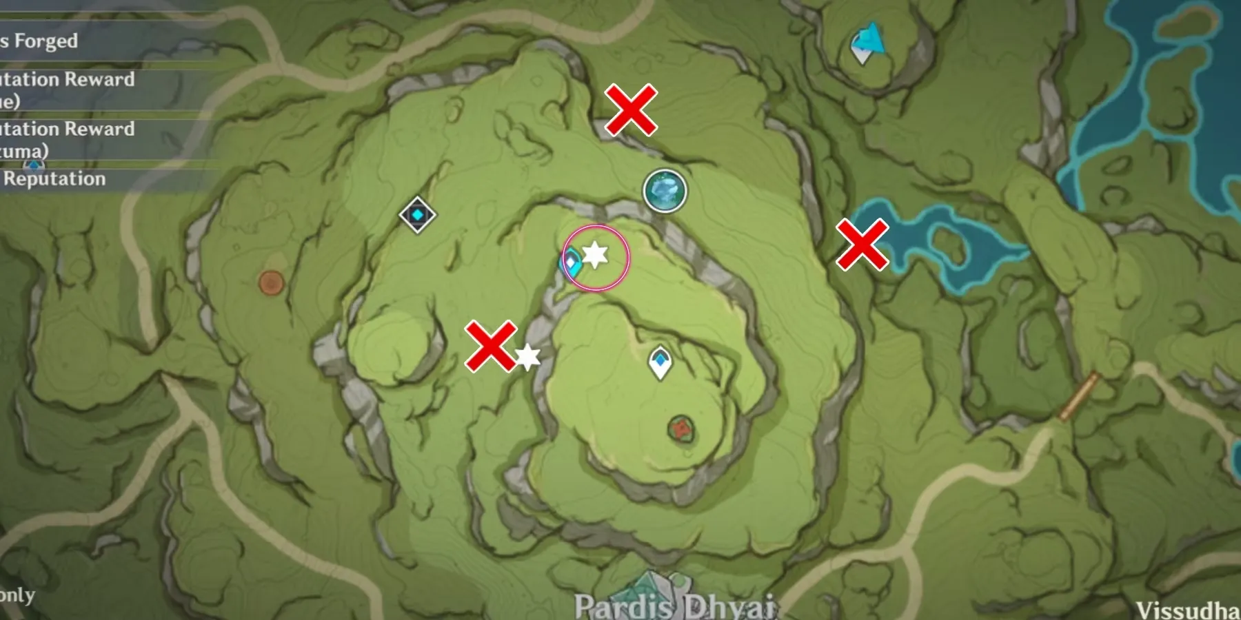 В общей сложности 11 мест расположения печатей каменных столбов находятся на поверхности земли, а остальные пять - в пещерах. Две подземные печати Каменного столба к северу от Пардис Дхьяи находятся в пещере, где игроки получат квест "Легенды каменного замка" в Genshin Impact. Остальные три доступны из этих мест: