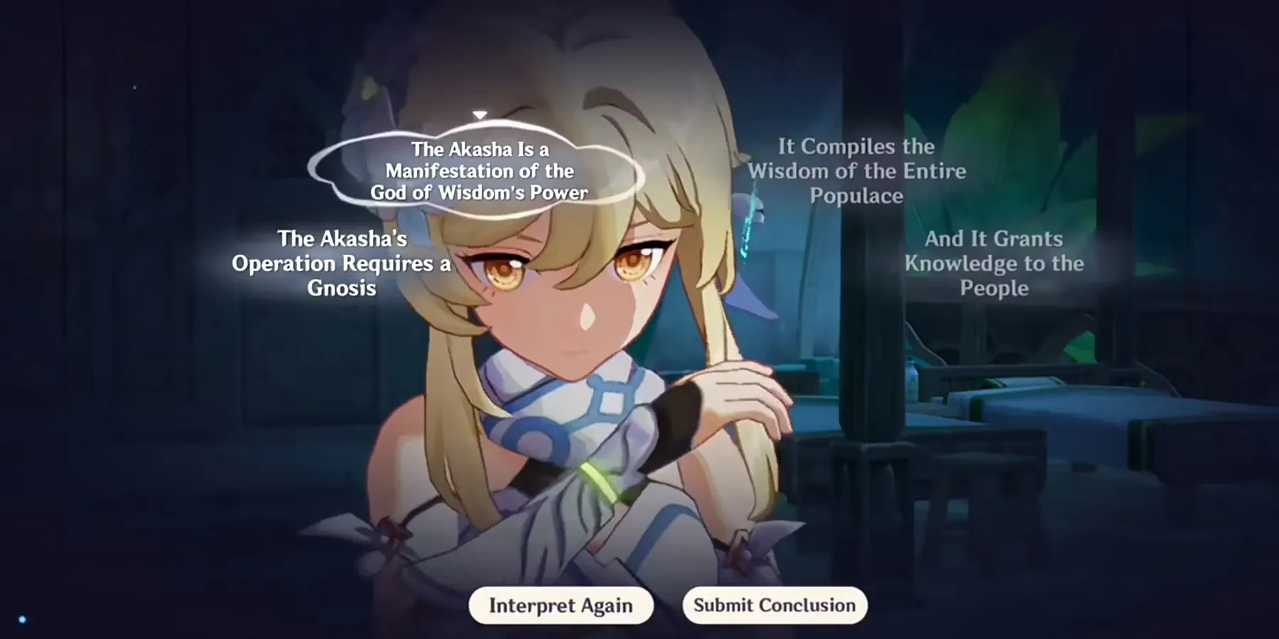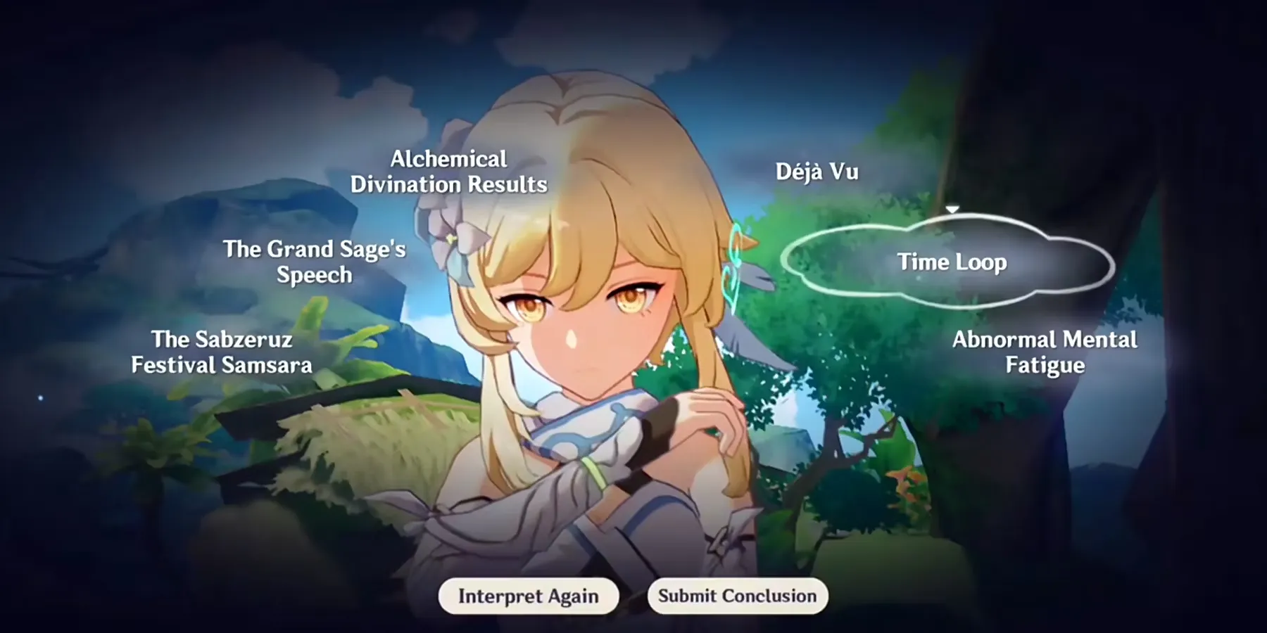 Путешественники будут входить в состояние Созерцания несколько раз в этом квесте. Иногда после интерпретации мысли загорается опция, указывающая на то, что игроки могут связать ее с другой мыслью. Когда игроки закончат размышлять, им нужно будет воспользоваться кнопкой "Отправить заключение", чтобы ответить Нахиде.