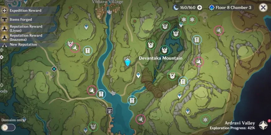 Маска Хилихурла и Звезда (зеленый круг) = 10 локаций с блоками потерянной энергии. Знак звезды указывает на то, что локация находится под землей.