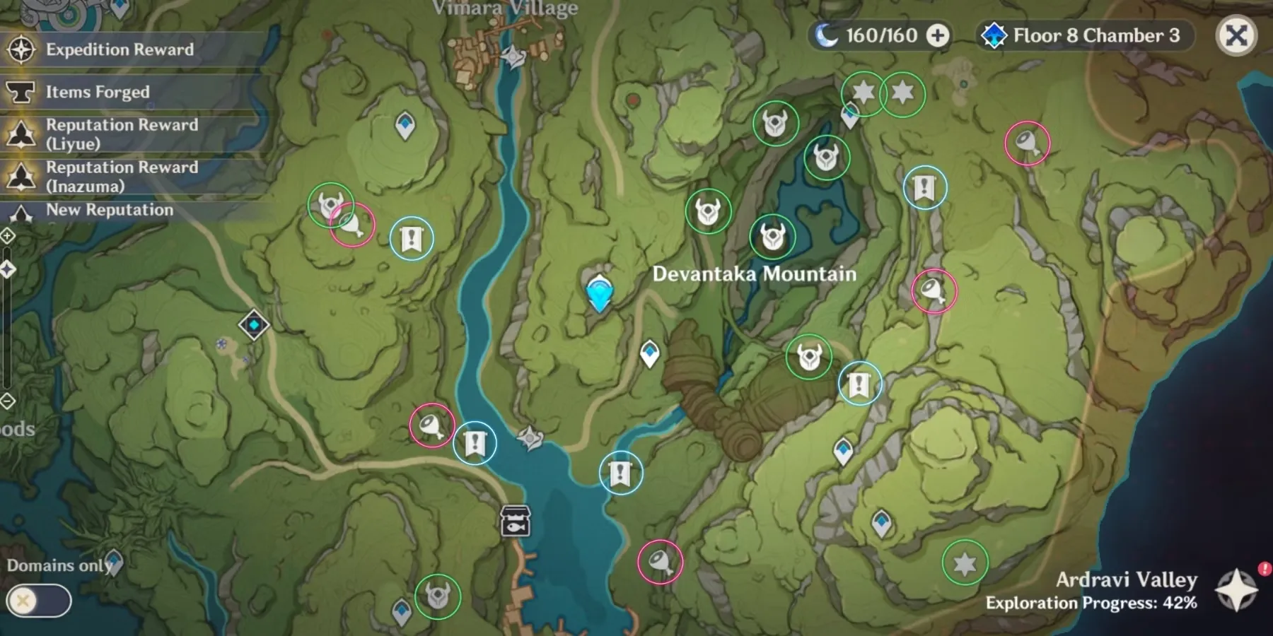 В Сумеру можно найти 15 мест, где находятся блоки потерянной энергии, а также пять поврежденных Стражей Руин. Все эти места находятся в районе горы Девантака. В каждой локации Стражей Руин есть место для исследования одного блока потерянной энергии, поэтому игрокам необходимо найти еще 10 мест.