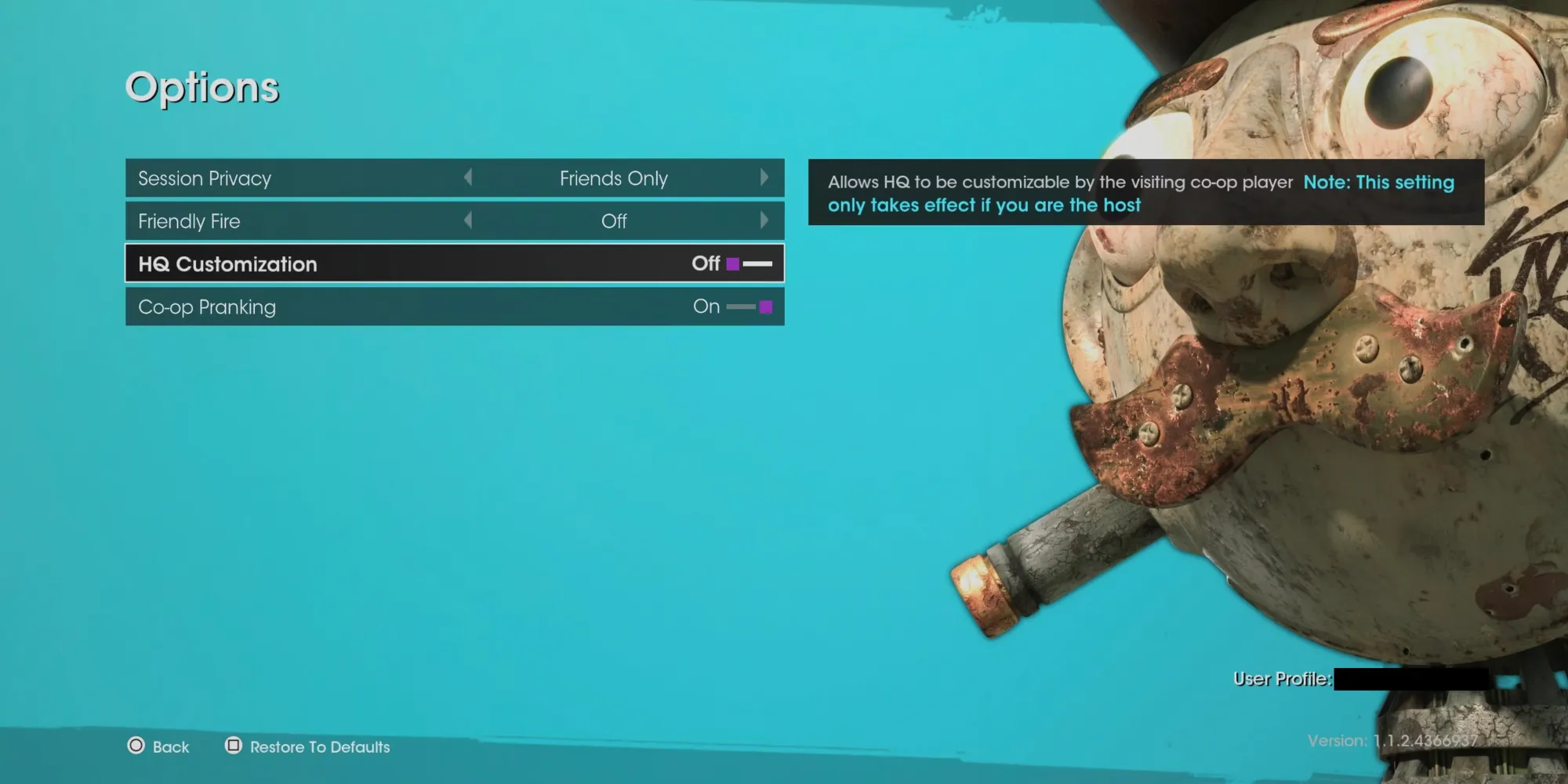 Эти режимы можно настроить с помощью опции "Настройки совместной игры" в меню паузы, что позволит игрокам изменить настройки конфиденциальности, включить дружественный огонь, а также позволит настраивать штаб и разыгрывать игроков, когда это станет доступно в дальнейшем сюжете Saints Row.