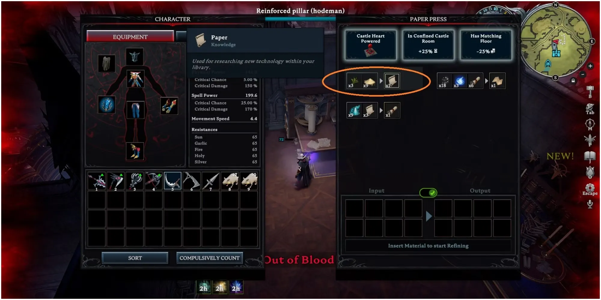 Точное количество этих ингредиентов будет отличаться на разных серверах, но комбинация этих двух веществ, помещенная в бумажный пресс замка, позволит получить бумагу. В мире нет недостатка в лесоматериалах и растительном волокне, поэтому их производство на базе - мудрая идея для тех, кто следит за тем, чтобы сердце замка работало и было готово к работе.