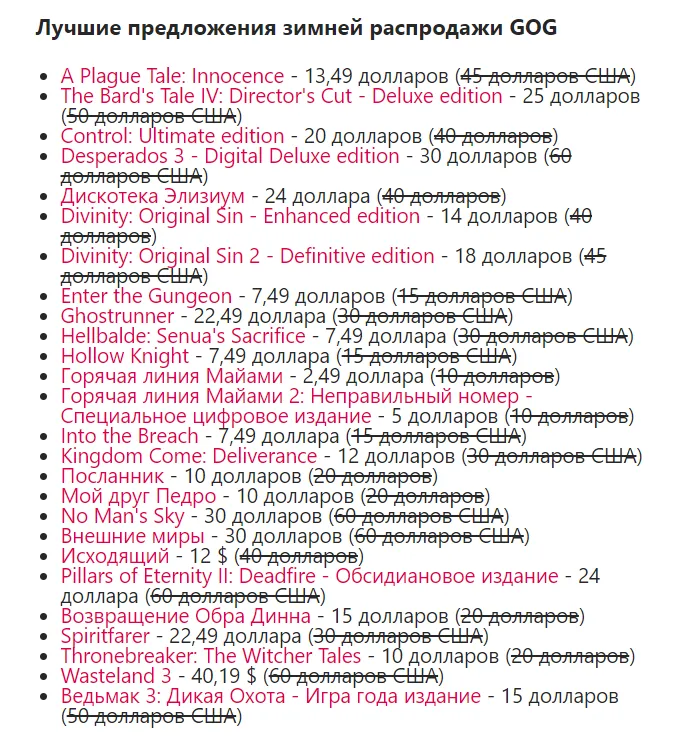 Другие известные предложения включают Ghostrunner за 22,49 доллара, Wasteland 3 за 40,19 доллара и No Man's Sky за 30 долларов. Вы можете просмотреть полную зимнюю распродажу на GOG и увидеть наши подборки ниже. Если вы ищете конкретную игру, мы рекомендуем поискать её в GOG, чтобы узнать, продается ли она.