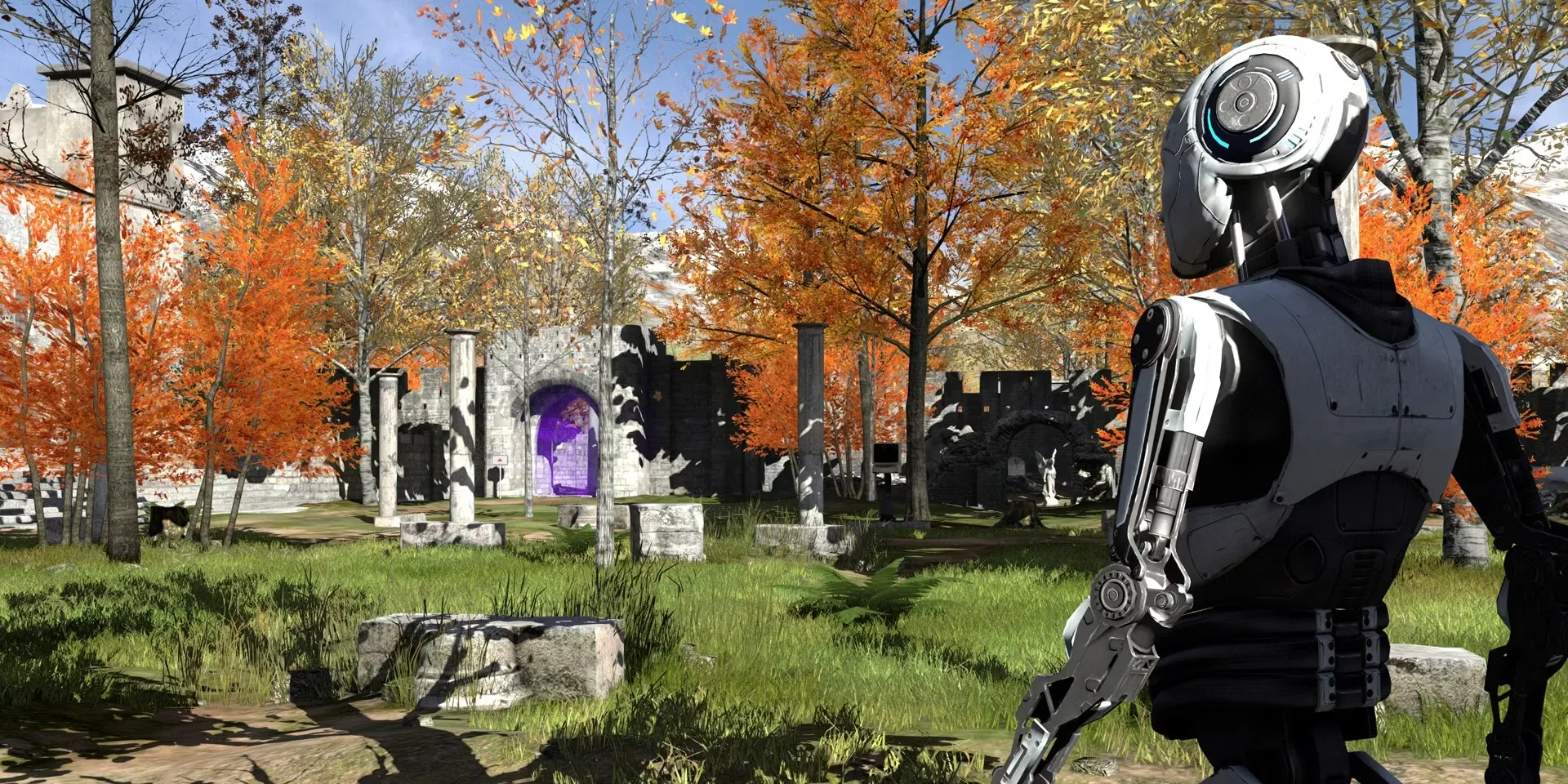 Предположим, у Азимова и Valve родился ребенок. Вот что получилось в игре The Talos Principle. Одинокий робот просыпается на таинственном острове, и только голос таинственного Элохима направляет его в процессе исследования игровых миров и головоломок. На протяжении всего путешествия робот узнает больше о тайнах прошлого через терминалы, разбросанные по острову.