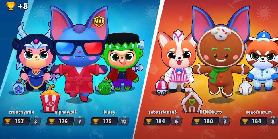 Игроки могут управлять 15 различными животными, каждое из которых обладает уникальными преимуществами и способностями, гарантирующими множество беспорядков и хаоса. Хотя в основном режиме Battle Royale все игроки сражаются друг с другом, в игре также есть несколько вариантов, ориентированных на команду, которые обеспечивают хаотичное совместное действие.