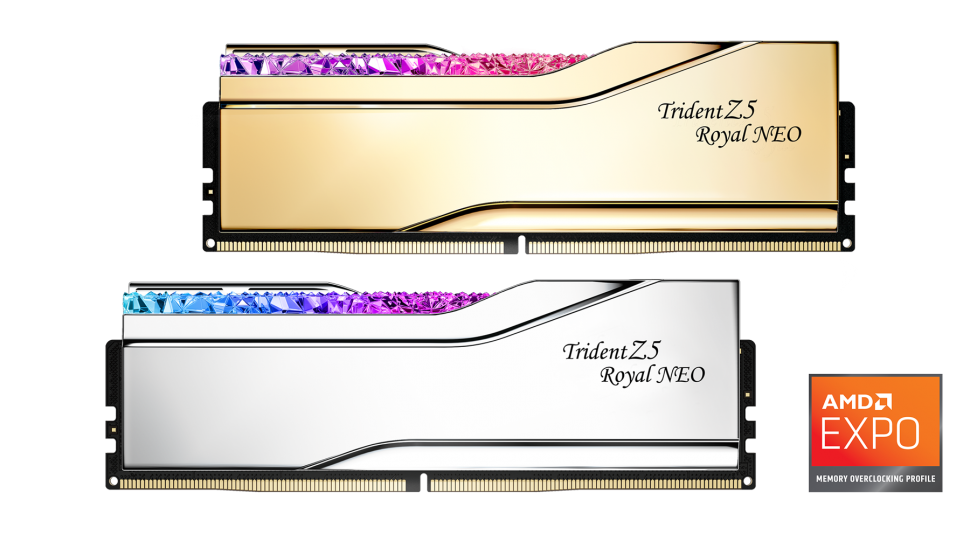 Новые комплекты памяти DDR5 серии Trident Z5 Royal Neo поддерживают технологию AMD EXPO (Extended Profile for Overclocking) для легкого разгона памяти через BIOS материнской платы и будут поставляться мировым дистрибьюторам G.SKILL с августа 2024 года.