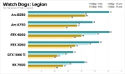 При разрешении 1080p, Intel Arc B580 демонстрирует отличные результаты, сопоставимые с более дорогими моделями конкурентов. В сравнении с Nvidia RTX 4060, производительность на большинстве тестируемых игр почти идентична. Однако в некоторых случаях B580 демонстрирует небольшое преимущество, особенно в играх, где требуется высокая пропускная способность памяти и эффекты трассировки лучей.
