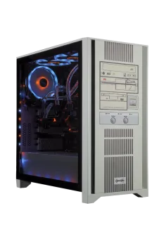 Используя пользовательскую УФ-печать HD на стальной передней панели, ПК RestoMod имеет индивидуальный дизайн, вдохновленный компьютерами 1990-х гг. кнопки и приводы предназначены только для внешнего вида, но вы всегда можете притвориться, что кнопка Turbo дает вам дополнительный импульс производительности. Чтобы завершить внешний вид, корпус ПК RestoMod был окрашен в соответствующий бежевый цвет, чтобы подчеркнуть, как в те времена корпуса предпочитали простоту цвета.