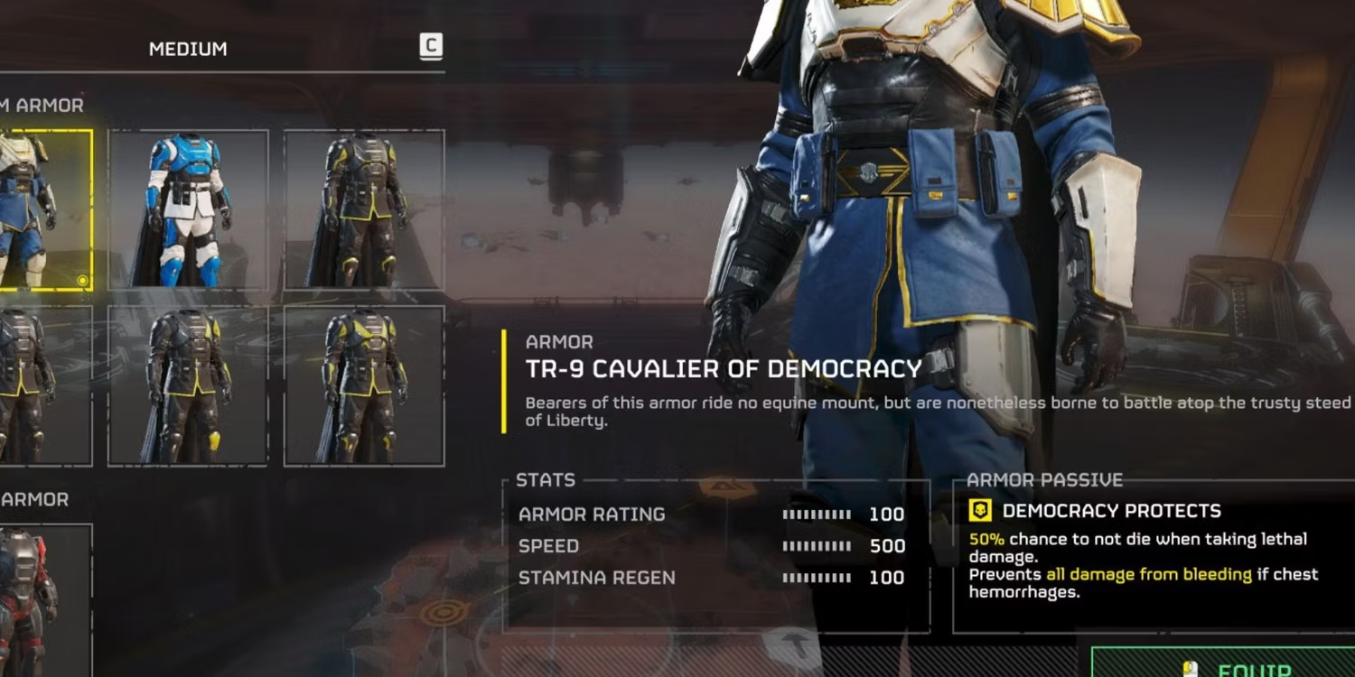 Existem três tipos de armadura em Helldivers 2: leve, média e pesada. Cada tipo tem suas próprias vantagens e recursos exclusivos.