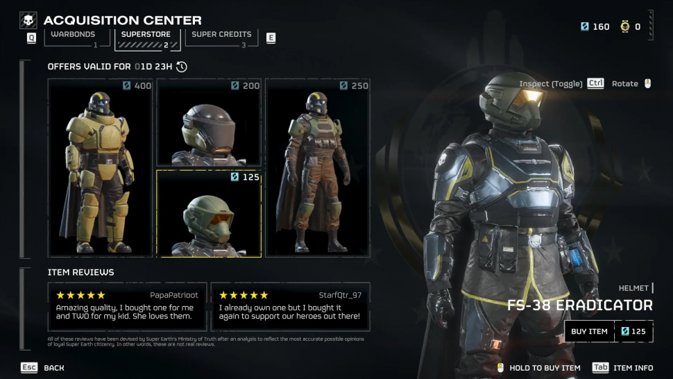 - Warbond Shops: Aqui você pode gastar medalhas e supercréditos para desbloquear diversas armas, armaduras, itens cosméticos e boosters.