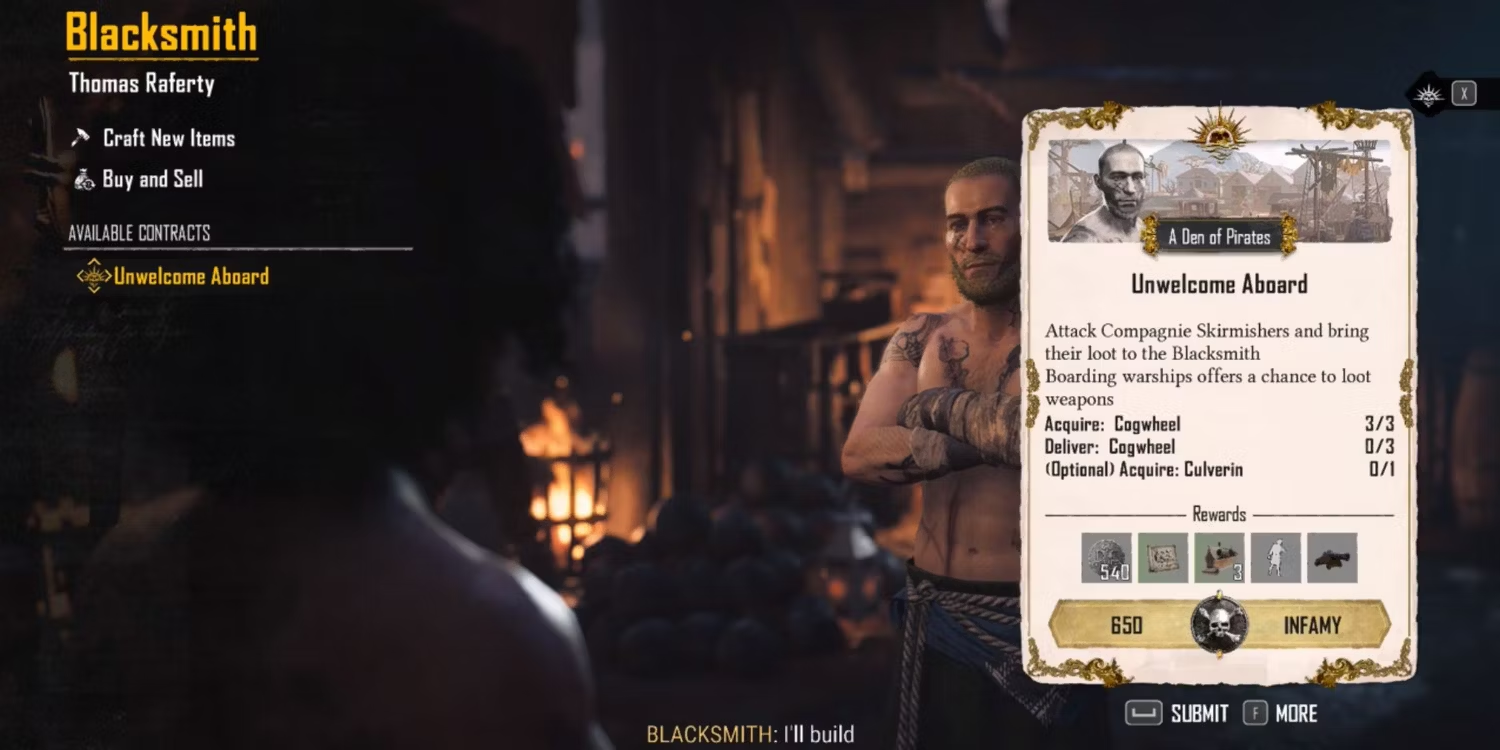 Ao completar contratos, os jogadores recebem moedas de prata, cosméticos para navios e outros itens. Além disso, dependendo da complexidade do contato, eles recebem muita vergonha.