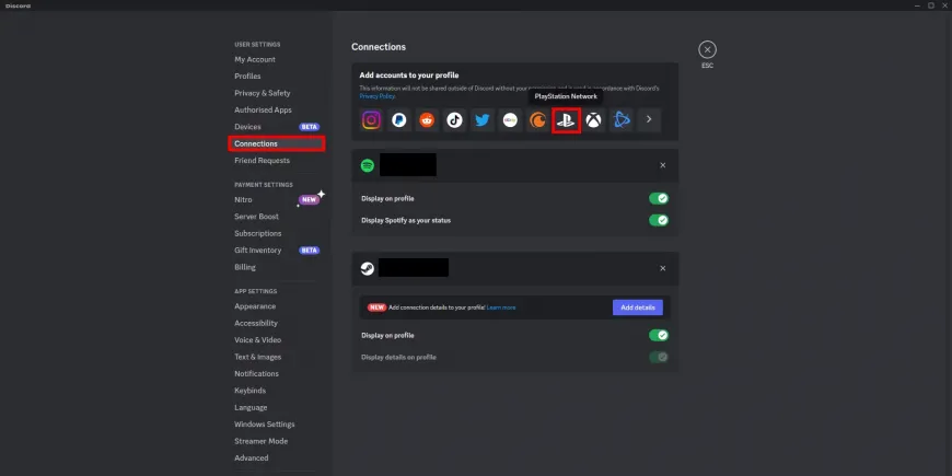 Зайдя в приложение Discord, перейдите в раздел "Настройки пользователя > Подключения" и нажмите на логотип PlayStation. Это приведет пользователей на сайт PlayStation, где они смогут войти в свою учетную запись PlayStation Network и связать свою учетную запись Discord.